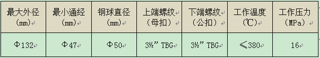 注汽泄压阀主要用于热采注汽井。通常与注汽洗井阀配合使用。注汽完成后,如需反洗井,投入Φ50钢球,关闭井下通道,可防止洗井液进入地层造成冷伤害。洗井完成后正打压,注汽管柱与套管连通,注汽管柱中的洗井液就可以通过注汽泄压阀上的泄压孔流入油、套环形空间,从而实现泄压作用。这样有效避免了上提注汽管柱时,会有大量的残留洗井液被带出,给井场作业带来不便与麻烦。